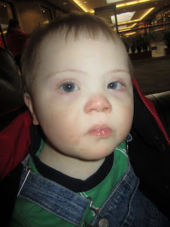 Inara had an accomplishment today. She learned to hit two blocks together. On top of that she also got to get out with mommy and daddy and go to the mall. She has not been to the mall since she was two months old. What can I say I rarely get to the mall unless it's on a date with Isaac. Isaac took me to get my hair done . Inara had her red hat with the green flower and she attracted attention everywhere we went. The only problem was people would come over to see her and in high pitched baby voices they would greet her. In turn Inara would repay their greetings with screams and tears. Inara has stranger anxiety.